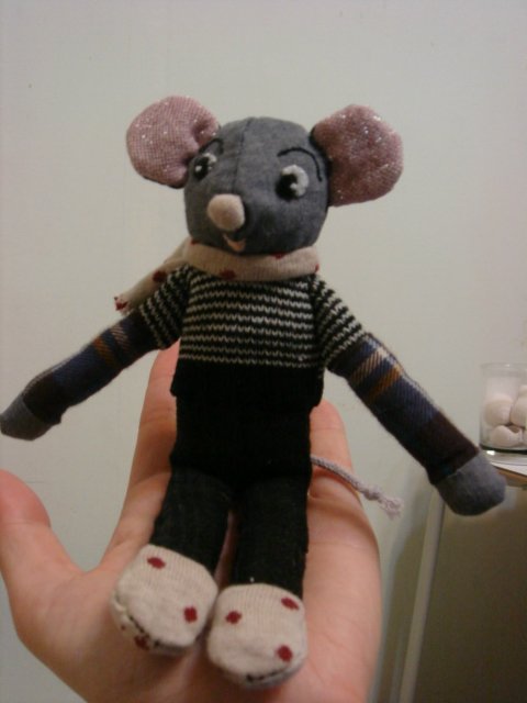 引っ張り出してきてちょっとずつ切り取り、 ハギレをたくさん作って、こんなものを作りました。 ・・・・・・ってまだデジカメの充電が終わらないので、もう少しお待ちください。 土曜日、竹光侍を貸してくれた友人に会うので、返さなければなりません。 沈んだ心を救ってくれた漫画なので、名残惜しいですが、仕方ない。 自分で買ってしまおうか。 900×8で7200円か。でかいな。 よし、月に1冊ずつ買おう。 充電できたかどーだか見てみよう。どれどれどれ、まだ出来ない。 サイゼの間違い探しがどうしても1個分からなくて、 とうとうググってしまいました。 だからといって絵が無いのでどこが分からなかったのか分からないので、 明日、竹光友人とサイゼに行って確かめたいと思います。 間違いの箇所はメモっときました。 充電できたかどーだか見てみよう。どれどれどれ、まだ出来ない。 やっとサワオのサインをUP出来る!と思ったのに、 肝心のサワオのサインが無くなりました。 捨ててはいないので、どこかにあるとは思いますが、 どこにあるのか見当が付きません。 こんな狭い部屋のいったいどこに隠れているんだサワオ。 もう良いだろう。 撮りました。 そして、パソコンに取り込まなくてはいけないので、 また充電します。 そういえば、彼氏とかいないのって何年振りだろうか。 軽く10年は、いってる。 ってまだ離婚していないので、今もフリーではないのですが、 これで来年離婚したら、10何年ぶりのフリーだ! オラ、ワクワクすっぞ! 好きな人を作って、片思いの切ない感じを味わうぞ。 もう、携帯ゲームじゃなくて、現実でそれをやっちゃうぞ。 そろそろ大丈夫かな。 出来た! 全部古い服を使って作ったので、 材料費0円。 顔の部分はSHIPSのパンツで、 上着は名古屋の古着屋で買ったカーディガン。 あとは母親のエプロンとか、 父親のスラックスとか。 手の平サイズのねずみくんです。 名前はまだありません。 昔よく着ていた服を、こうやって形にするのは楽しい。 これを作っているとき、父親は隣で酔っ払ってて、 色々話しかけてきましたが、なるべく笑顔で応対出来ました。 そして、このねずみくんの完成を、一緒に喜んでくれました。 このねずみくんはオリジナルじゃなくて、本の通りに作ったので、 売ったりとかは出来ません。 本当は身長30センチくらいある型紙なのですが、 縮小しました。 暇なので、もっと作ろうと思います。 長々とすみませんでした。 暇なので。 昼に起きて、土手行って、夕飯作って、深夜に寝る。