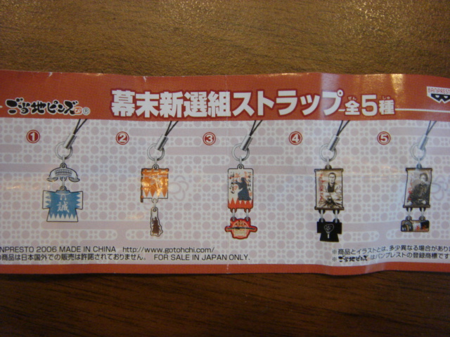 本当に嬉しくて、嬉し泣きの日々です。 カワイイ! 食べるのがもったいない! でも食べたらおいしい! とっくにホワイトデーが過ぎているのに お返しが大幅に遅れて申し訳ございません! ゆあらさん、ありがとうございました!! しかもヴィンテージ物! 2006年て個人的に記念の年でもあるので、 またまたエスパー発動していただきました。 これは、もったいなくて飲んでいません。 このまま保存しておいても大丈夫なのかな? 出来れば2016年とか2026年とかに開けたい。 ごいすさん、ありがとうございました!! ハンドメイドです。送り主様の。 見れば見るほどクオリティ高すぎて、 しばらく唖然としてしまいました。 これは売り物以上ですよ。芸術作品ですよ。 Fさん、ありがとうございました! 「お金では買えない価値」ですよ。 非売品に弱い私は、こういう贈り物が 大好物です! あーあ、銀さんが本当にいたらいいのに。 リカードさん、ありがとうございました! 絶対出来ないと思っていたので、 嬉しくて仕方ありません。 近藤さんがいるところがもう。 ジャンプのスタンプラリーやったことがあるので、 大変さが手に取るように分かります。 さらに、ポストカードにまで押してくださいました! ゆあらさん、私はあなたに足を向けて寝ることが出来ません。 池袋、待ってろよー! 新選組ストラップ!! 史実に興味を持ち始めてのこれら。 ニヤニヤがとまりませんでした。 ありがとうございました!! 気分が冴えない日は、便器を磨くとともに、 こうしていただいたものを出して眺めたり、 撮った写真を見たりして元気をもらっています。 ご当地フォルムカードはすぐ手元に置いておいて、 いつでも見られるようにしています。 いつも本当にありがとうございます! 全力で恩返しをしたいと思います!