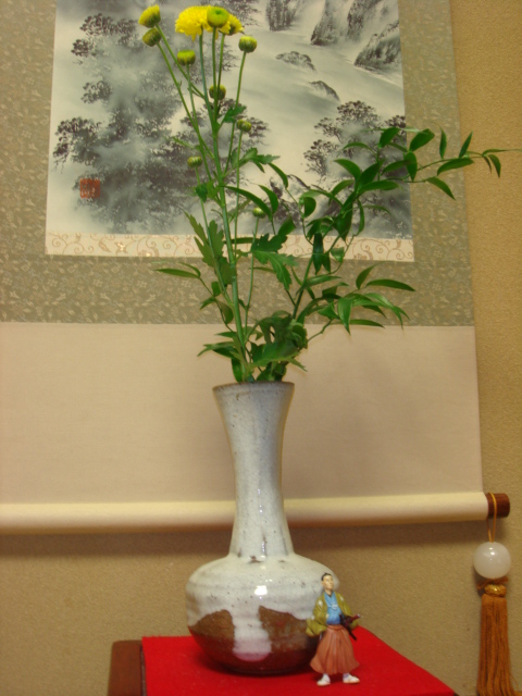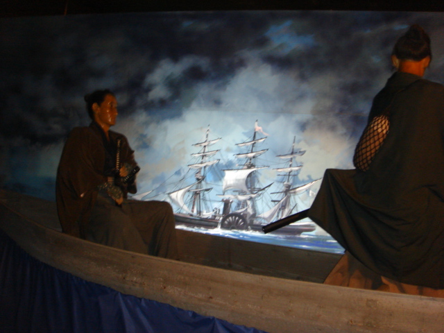 萩に着いてまず1番最初にやったことは、 ご当地フォルムカード購入。 1番最初に行った郵便局で難なく手に入れることが出来ました。 こりゃ幸先いいぞ、ってことでここに立ち寄りました。 今日はココのみ。 伊豆で黒船に乗ろうとした 松陰先生(蝋人形)と弟子。 ここ、正直お化け屋敷。 薄暗い館内に今にも動き出しそうな蝋人形が、 これでもかーこれでもかーと展開されている。 舞さんは小学生の時に見てトラウマになったそうですが、 私は大人になった今みても怖くて怖くて、 あまりの不意打ち恐怖に笑いが止まりませんでした。 蝋人形と同時に流れていた男の人の説明テープがこれまた恐怖で、 何を言っていたのか、なんにも覚えていません。 「松陰先生、松陰先生、松陰先生・・・・」 というフレーズだけが耳に残りました。 あ~怖かった。 気を散り直して昼食。 美味しかった。 食べ物撮るのも、普段は恥ずかしいけど、 旅なら堂々と出来ます。 その後、萩博物館へ。 土曜日から「討幕エネルギーの譜系」 という展示が始まるので、土曜日に行こうとしたのですが、 金曜の夕方に行ったら、「もう見られますよ」と言われたので、 はりきって入りました。 館内は土禁で、スリッパに履き替えて中に入りました。 色々な展示がありました。 当時の攘夷のパンフレット的なものを桂が作ったか貰ったかで、 龍馬がこれを2部、桂に送ってもらうように頼んだとか書いてあって、 「なにこれ、鑑賞用と保存用?」って思いました。 あと、「新選組!」で出てきた薩長の旗、菊家紋の実物とか、 高杉が詠んだ歌とか、 松陰先生が死んで悲しんでいる高杉の手紙とか、 奇兵隊が保存食として持っていった幕末パンを再現したりとか、 なかなか楽しい展示でした。 松下村塾の移り変わりCGは見ごたえがありました。 それからホテルに行き、温泉に入って、ホテルから程近い 海鮮料理屋さんで夕飯を食べて、1日目終了。 館内は浴衣で移動OKで、風情があり、 とっても良い旅館でした。 部屋に飾られていた花。 右下のコレ。 勝先生が出ました。 ちなみに友人も勝先生でした。 これを飾ってみました。 良い旅だ。これは良い旅だ。