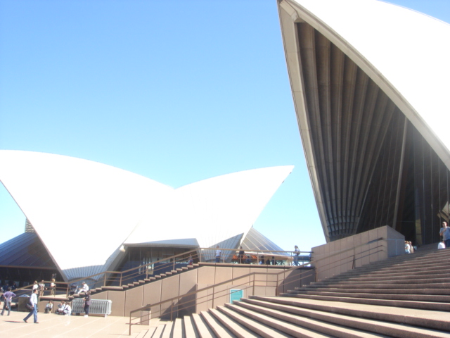 飛行機に7時間以上も乗っていると、空の上にいるという感覚がなくなり、 車で道を走っているみたいでした。 飛行機に初めて乗った時はちょっと揺れるだけで「落ちるー!!」って 恐怖で硬直していたのに、 もう何度も乗ると、「もっと揺れろ」とか思ってしまいます。 今回行ったオーストラリアのシドニーは日本と時差が1時間しかなく、 海外旅行最大の敵「時差ボケ」がなかったので、とても快適でした。 季節は春。日本と間逆です。 日本は北に行くと寒くなりますが、オーストラリアは南に行くと寒くなります。 最初にびっくりしたのが、携帯電話。 飛行機を降りて電源を入れると、ドコモからメールが来ました。 日本への電話方法と、海外はパケ代が別途かかりますよという内容でした。 一番びっくりしたのが、時計。 オーストラリアの時間と日本の時間が自動的に2つ表示された! きったない携帯ですみません。 そして左上に見たこともない英語の文字が。 これがたまに違う英語になったりしました。 通話は怖くて出来ませんでしたが、 メールは1日に2通ずつ送りました。絵文字も送れました。 と、こんなどうでもいいことはさておきまして、 1日目は、シドニーの名所を回りました。 沖縄みたいに綺麗な海がシドニーからすぐのところにあり、 ジョギングをしている人が凄いたくさんいました。 犬の散歩をしている人もたくさん。サーフィンをしている人もたくさん。 外人の赤ん坊がかわいすぎて、誘拐されても仕方ないなと思いました。 シドニーと言えばこれ、みたいなやつです。世界遺産。 くっついているのかと思ったら、 色々な大きさのコレが3つ並んでいて、地下でつながっていました。 代々木体育館みたいでした。 真っ白だと思ったら、タイルが敷き詰められていました。 近くで見ると、白っていうかベージュでした。 この橋の一番上、歩けるんですって!2万円払うと。 命綱付けて登るらしいです。 高いところは100m以上あるらしいです。 見えます?一番上のゴミみたいなやつ。アレ、人です。 紫外線が日本の7倍あるらしく、 とりあえず何でも白く見えました。 白いものは白すぎて、自ら光を放っていました。眩しかった! シドニーの夜景です。 シドニータワーというものがありまして、 そこの上のレストランからの景色です。 左上のは満月です。海に写って綺麗でした。 写真には写らない美しさがありました。リンダリンダ。 と、1日目は終わりです。 長いので2日目は次回です。 というか、こんなの読んでて皆さんは楽しいのか分かりませんが、 私の旅の記録ってことで、勘弁していただきたいと思います。 こんなのがあと2回続きます。