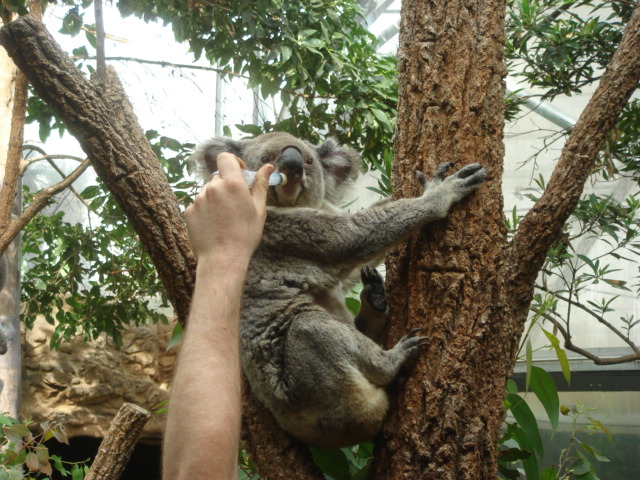 ブルーマウンテンと、動物園に行きました。 だいたいこんな感じのところを観光しました。 世界一の傾斜のトロッコに乗ったり、 下がガラスになっていて谷底が丸見えのロープウェイに乗ったり ユーカリの森のマイナスイオンを浴びたりしました。 そして、動物園。 オーストラリアの動物だけを集めた動物園です。 動物園大好きな私はテンションが上がりましたが、 同行者が醒めていてどんどん先に行ってしまうのでこっちも興醒めでした。 それでも楽しもうと、写真をたくさん撮りました。 ↑ツチノコみたいなやつと、エリマキトカゲと、カンガルーと、ワラビーです。 ↑ウォンバットと、コアラ3連発。野生と違って、よく見えました。 そして、ベストショットがコレだ! コアラはカワイイ。 ケアンズとかは、コアラを抱っこ出来るみたいですが、 シドニーは法律で禁止されているらしく、 触ることが出来ませんでした。 見るだけでも満足でした! 以上で、オーストラリアの旅は終わりです。 お付き合いくださり、ありがとうございました! 今回の旅行で、自分の英語力の無さに絶望しました。 2年前にカナダに行ったときは、もう少し話せた気がするのですが、 今回はもう、全然話せませんでした。 楽器とか言っている場合ではなく、もう、英語。 英語をきちんと話せるようになろうと固く決心しました。 まずは、眠っているDSの英語漬けを引っ張り出して始めたいと思いました。 英語だ、英語。 まずはそれからだ。