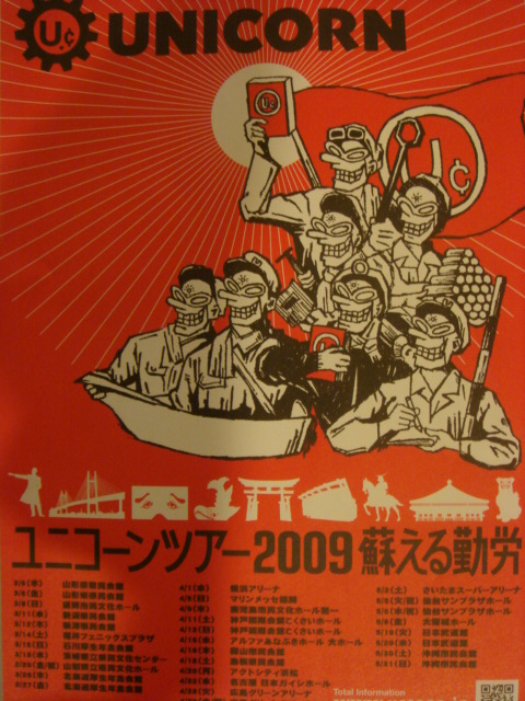 もう、今はユニコーンに持ってかれてます。すべて。 いまだに余韻に浸っています。 ああ、早く名古屋に行きたい。 あと一ヶ月、何をして過ごせばいいのだろう。 3月20日は、私が好きだったバンドのメンバーの誕生日で、 彼もゴリラです。 そして、とても面白い。 過去に2冊本を出していて、それがもう面白くて、 辛いことがあったときはそれを読んで元気になったりしていました。 そこに、民生のことが書いてあったので抜粋。 『対バンにいつもユニコーンがいたため、私の存在が、 かなりいいかげんなものになっていた。 これほど似ているだの、まねしてるだのいわれるのは 「ゴリラ」以来であるが、ほんとうに、あきれかえってしまった。』 私はちっとも似ていないと思うんですが、当時は似てたみたいです。 今、彼はゴリラです。武田鉄矢にも似ています。 書き出しは、「やあ、みんなアソコぐちゅぐちゅかい?」だの、 「やあ、みんなうんこビリビリかい?」だの、 「やあ、みんなアソコハメハメかい?」だの、下品極まりない言葉が。 もちろん記事も下品です。 私の下品好きはこれがルーツかも。 ゴリラバンザイ! ちょっと舞さん。やばいっすよユニコーン。 帰って来て飲んだビールは、それはそれは美味しかった! ホント、再始動ありがとう。 あなたたちのおかげで、また人生楽しくなりました。