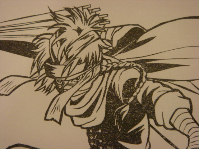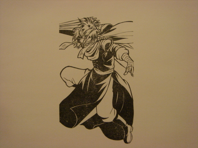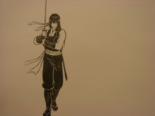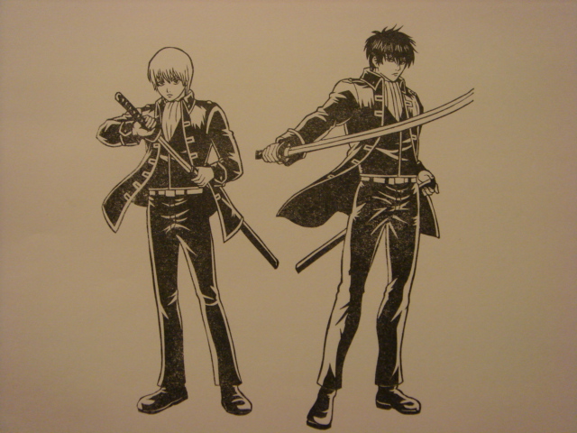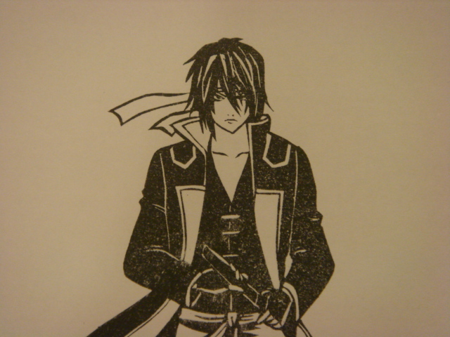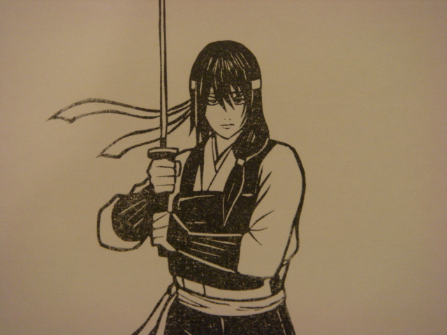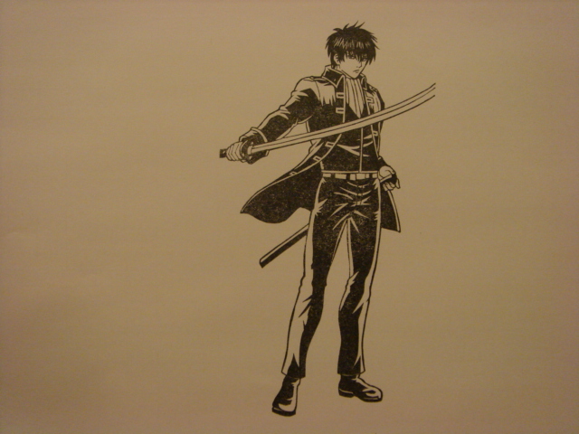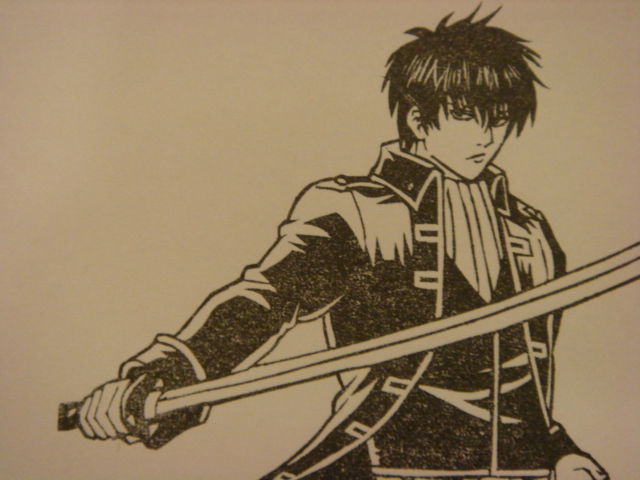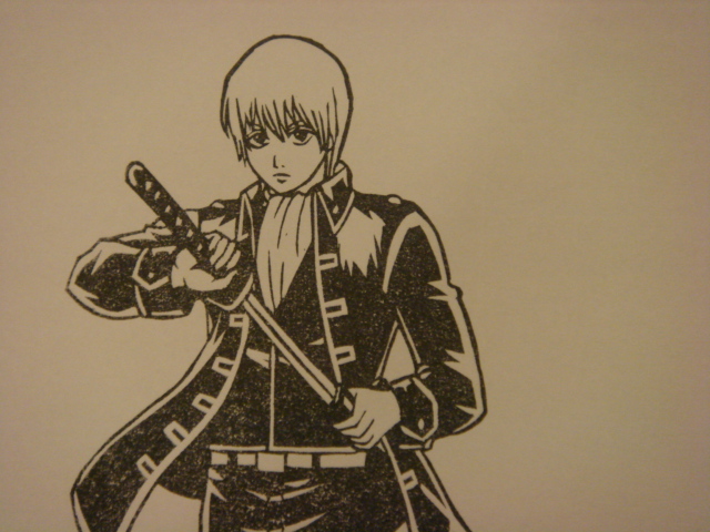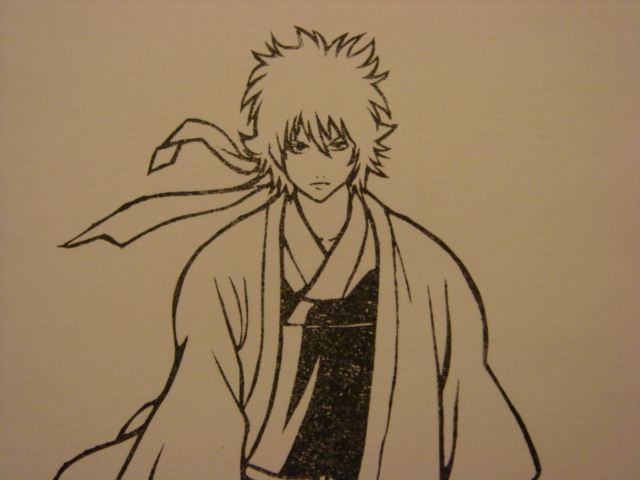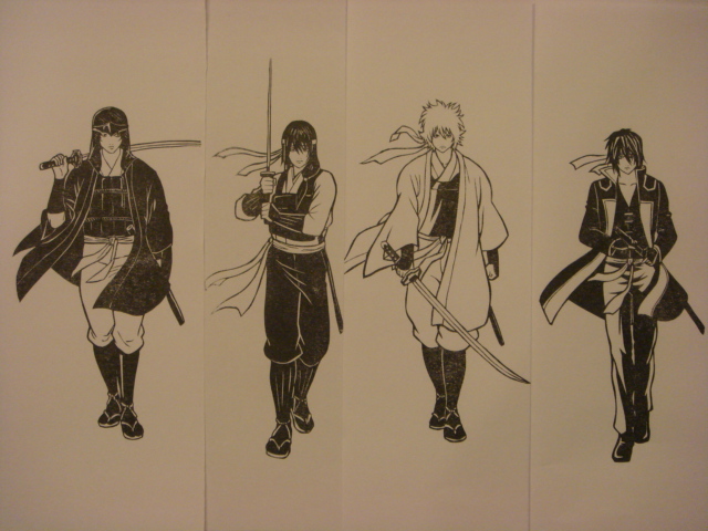 夢の中で編集していて、でも全然ダメで、うなされて目が覚めました。 仕事から帰ってきて、酒を飲みながら録画しておいた銭ゲバを観て、 それから動画を作りました。 完成しました! 例によって公開は入念なチェック後なので、もう少し先ですが、 動画よりちょこっと先にはんこ画像を載せたいと思います。 紙のつなぎ目が気になりますが、 無いものとして見ていただけたらこれ幸いです。 なんかみんな凛々しくてカッコイイ。 銀さんの目と眉が近い。 で、銀さん。これ本当はハチマキがおでこから覗いてたんですけど、 どうもハチマキの線が眉毛に見えて仕方なく、 今の死んだ魚の目みたいになってしまったので、削除しました!! もう、なんでここに近藤さんがいないんだ! と、何度も思いながら編集しました。 でも、仕方ないよね。 やっぱりこの二人ってカッコイイもの。 カッコイイ担当だもの。 今までと違い顔が大きめなので、 実は比較的彫りやすかったです。 トレースは苦労しましたが。 勿体付けているようで申し訳ありませんが、もう少しお待ち下さい! 全部プレゼントしますので!