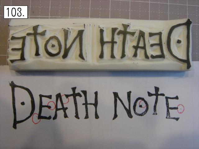といっても、前回でだいたい終わっているので、今回は仕上げです。 これは便利です。とても便利です。 補充インクも販売しているので、 とってもエコ! 赤○を付けたところが、彫り残しです。 上の消しゴムと比べてみると、 確かにインクが付いています。 第2版です。 これで問題なければ、完成です!! 太い。そして雑。 所々違う。 こんなもんでOKです。 こうして押しちゃえば、太い方が存在感があって良いと思うんです。 布用インク「バーサクラフト(BLACK)」使用。 DEATHりんご。食べたら死ぬみたいな。 ※撮影後、スタッフがおいしくいただきました。 以上でDEATH NOTEロゴは終了です!! おつきあいくださり、ありがとうございました! 次回は誰か人物を、と考えております。 いつ始まるかは未定ですが、乞うご期待! あと動画も乞うご期待!