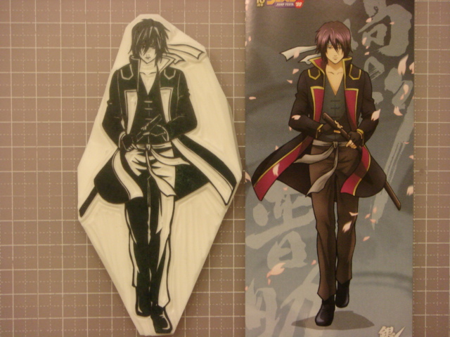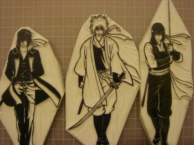 銀魂ステッカーより、 桂小太郎です。 色が付いていると、 どこを彫ってどこを残そうか 迷います。 全部彫ると白夜叉化してしまうので、こんな感じです。 昨日の銀さんは、顔がちょっと微妙になってしまいましたが、 このヅラは、比較的美形に彫れたのではないかなと、思います。 細かいところは抜きで。 あんまり凝視するとあら?というところがありますので、 チラッと。チラッと見てください! 土曜日はキッズステーションで銀魂ばかりやっていて、 それ見ていたんですが、 好きな話ばかりで得した気分になりました。 銀魂って何回見ても面白い。 もっと全蔵出てくればいいのに。 全蔵って「ガンバの冒険」のイカサマのイメージです。 小さい頃大好きでした、イカサマ。 ストーリーとか全然覚えていませんが、イカサマは好きです。 で、ガンバでぐぐったらなんと!来年キッズステーションでやる! 見なきゃ、絶対見なきゃ。 MTVとか見ようと思って入ったケーブルテレビ、 気付いたらキッズステーションしか見ていません。 そして、私の仕事納めは12月31日23時59分59秒で、 仕事始めは1月1日0時0分0秒です! そうです。年越し仕事です。 もう6年連続仕事DE年越し。 はぁ~。 これがまた大忙しなんです。 カウントダウンとかしばらく行ってません。 ロキノンとか行きたいな。 |