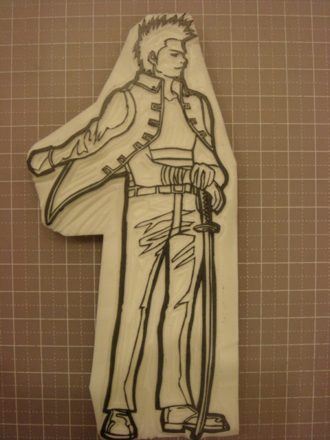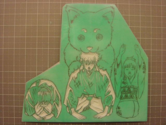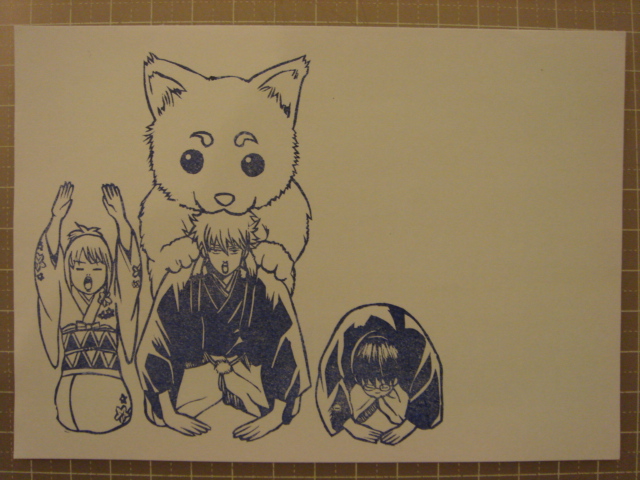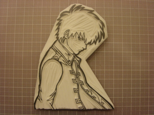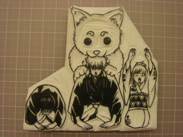 と、その前に、万事屋の押したやつを。 実際は黒インクの予定です。 なんとか、難関突破。 これも、ハガキサイズの紙です。 右に文字が入ります。 真選組がカッコよくなら、 こっちはかわいく。 あ、革ジャンのほうも カッコよく。 そして、初号機。 とっても細かいですが、 頑張りました。 ハガキサイズの紙です。 これに、ネルフマークを 後ろに押す予定です。 初号機と上手にシンクロ出来たと思います。 暴走は、しませんでした。 これを駆使して年賀状に彩を。 あと、ニアとLのオマケ、ネルフマークを彫れば完成です。 良かった。なんとか元旦に間に合いそうです。 私の、今年のクリスマスイヴはありません。 はい、仕事です。夜10時まで。 帰りのゆりかもめ、きっとカップルだらけなんだろうな。 私はそのカップルに「かわいそう」的な目で見られるのかな。 別にいいんですけどー。 と、いうわけで、年賀状お楽しみにー!! PR