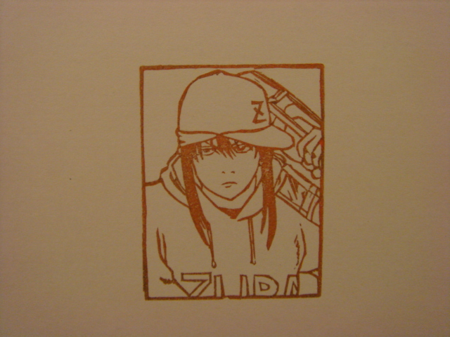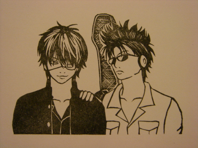 ベースを弾く右手が好きで、 ライブ行っても右手ばっかり見ていました。顔も見ず。 ベースはエロい。 そして私はキモイ。 時間が掛かりすぎてしまいました。 まだキレイに押せてないです。 酔っている時に彫った高杉は 少し幼くなってしまいました。 私はジャンプの一番後ろのコメント読むのが好きで、 漫画読まずにそれ読んでいるんですが、 ピロウズの名前が出てきてました。 もう、10年以上前、私が行ったライブにピロウズのサワオが 客として来ていて、しかもかなり酔っていて、 半分投げやりでみんなにサインしていたので、 どさくさにまぎれて私も貰いました。 その時サワオが食べていたたこ焼きが、サイン貰った紙に サワオの口経由で付いてしまったのは、いい思い出です。 だから、ピロウズの名前を聞いたり、見たりすると、 たこ焼きが、頭をよぎるのです。 なんか、変な、わけ分からない話してごめんなさい。 バンド繋がりって事で。 別に繋がってねぇ。